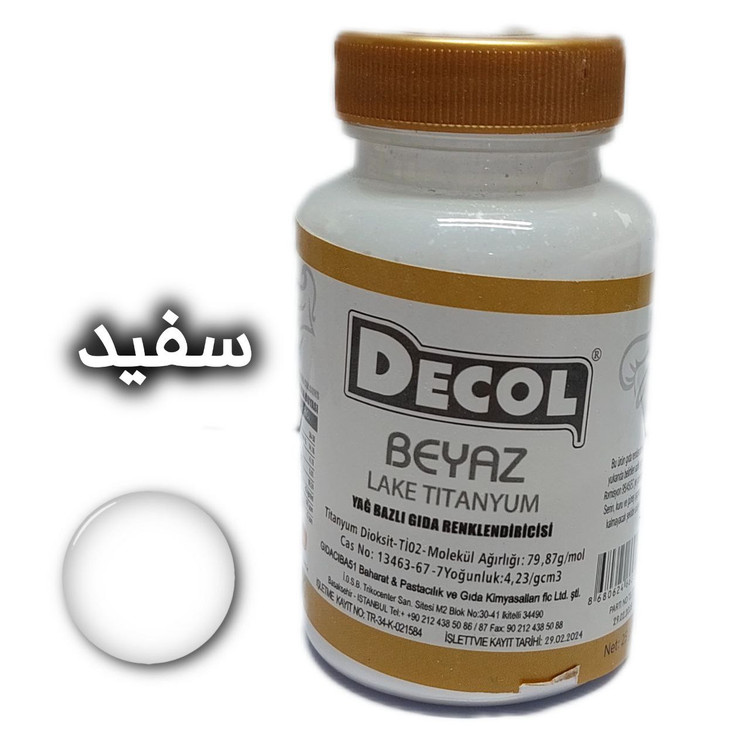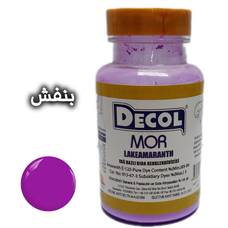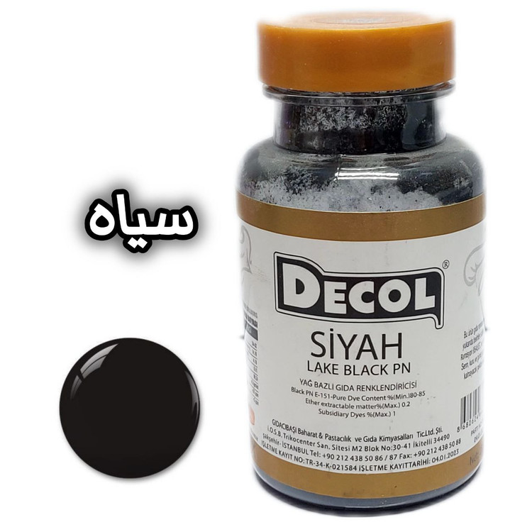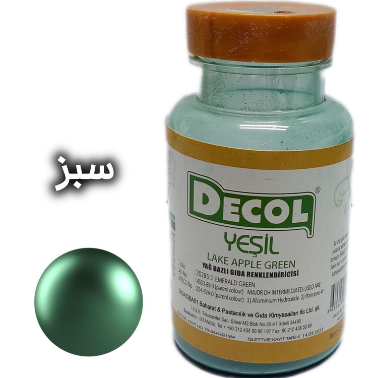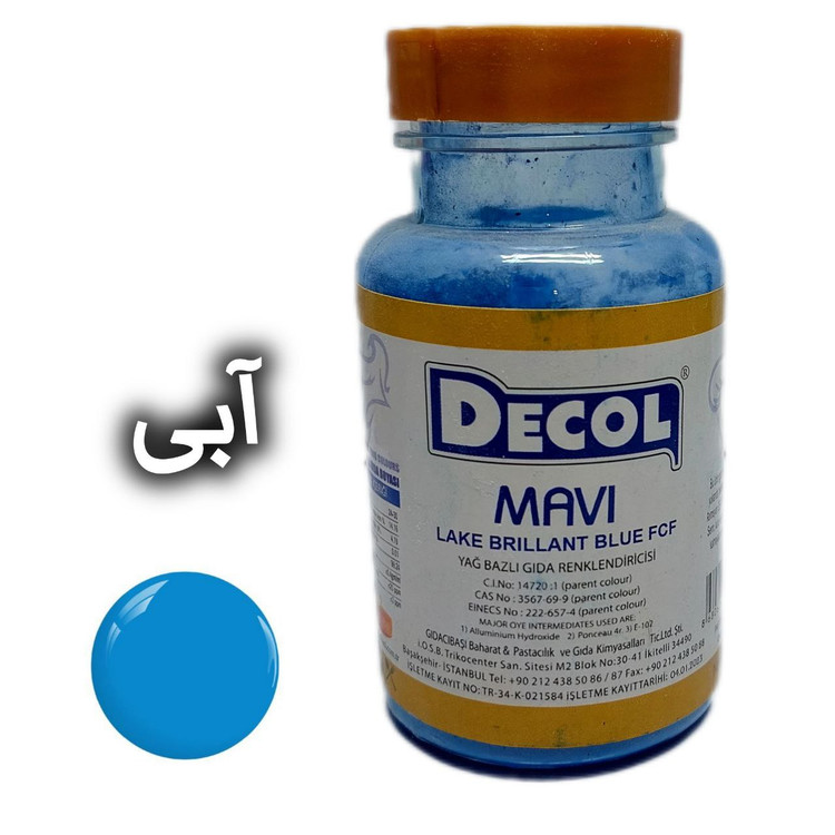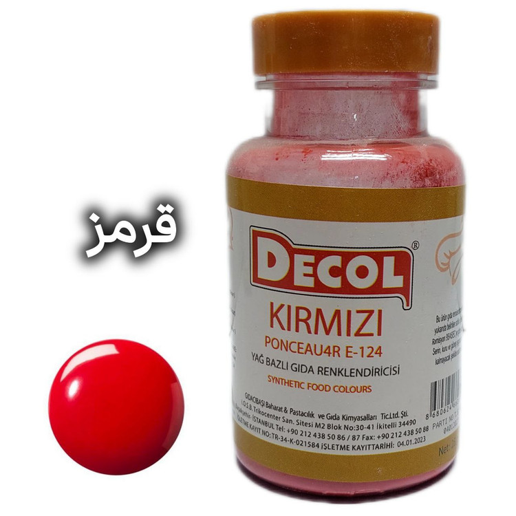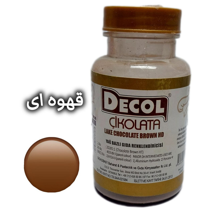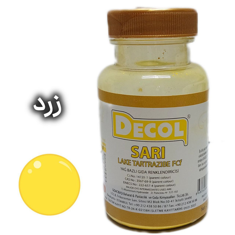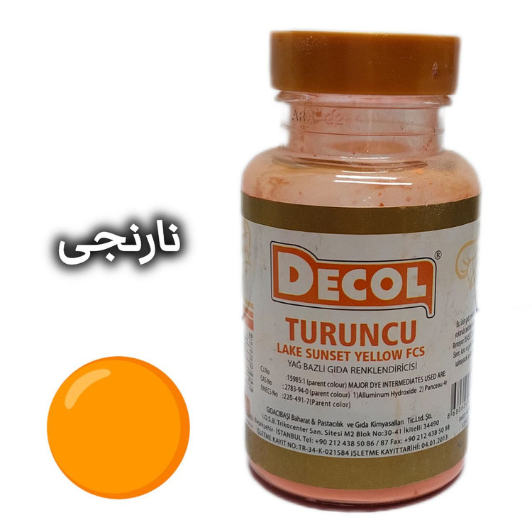 رنگ خوراکی پودری دکول، محصول شرکت گیداچی باشی ترکیه است. این شرکت در صنایع اسانس و رنگ از شرکت های سرآمد ترکیه است.